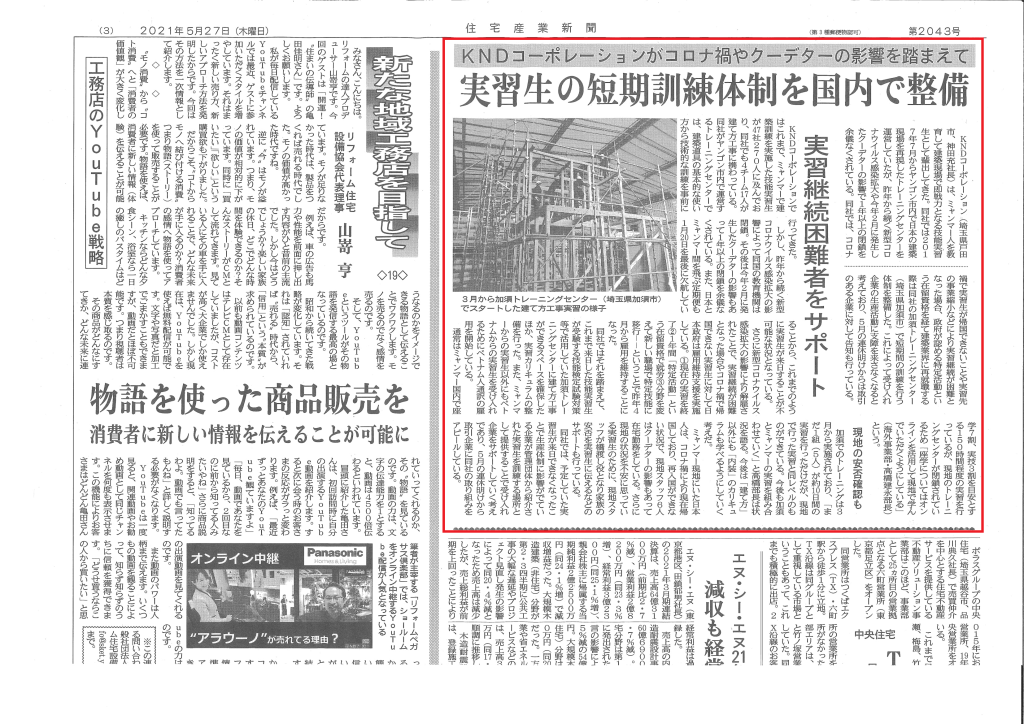 本日は、5月27日に住宅産業新聞の一面に取り上げて頂いた記事をご紹介します。