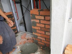 もう一枚の写真はブロック積の左官作業である。